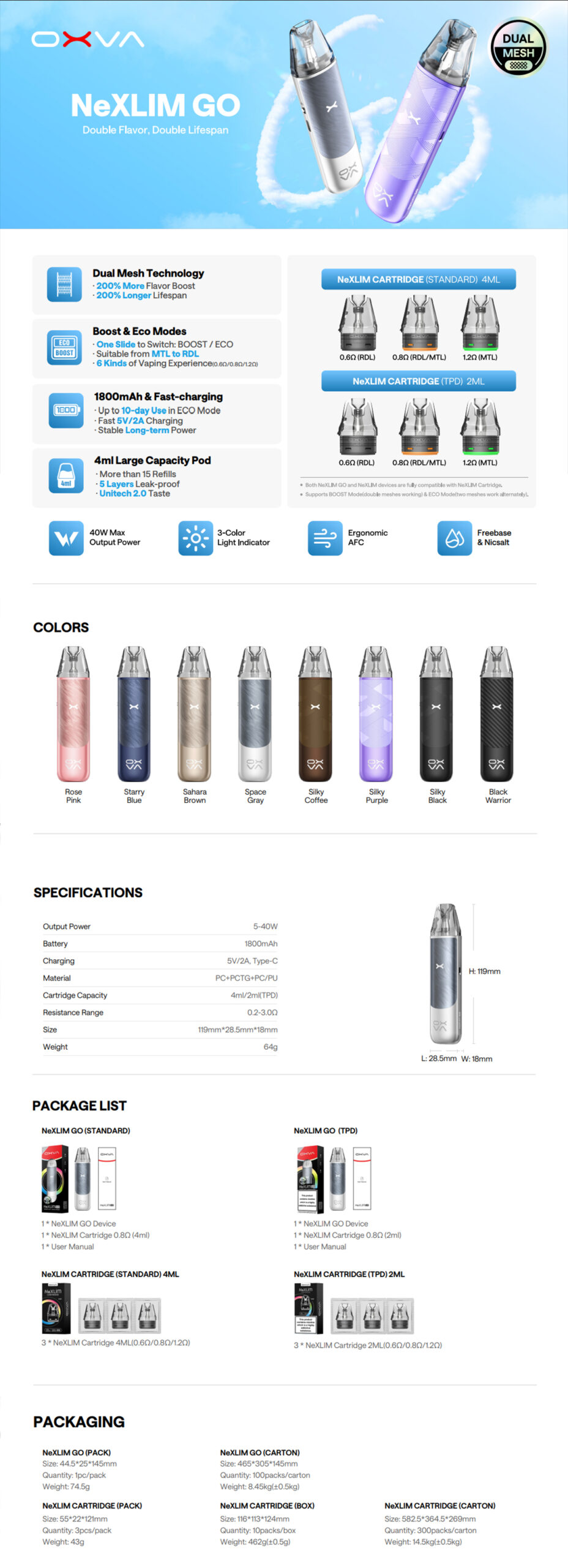 Το OXVA NeXLim Go Pod Kit είναι ένα σύγχρονο, ελαφρύ και αποδοτικό pod kit, ιδανικό για όσους αναζητούν αξιόπιστη και δυναμική εμπειρία ατμίσματος. Με μοντέρνο σχεδιασμό, ανθεκτική κατασκευή και προηγμένες λειτουργίες, ανταποκρίνεται πλήρως στις ανάγκες τόσο του αρχάριου όσο και του έμπειρου χρήστη.