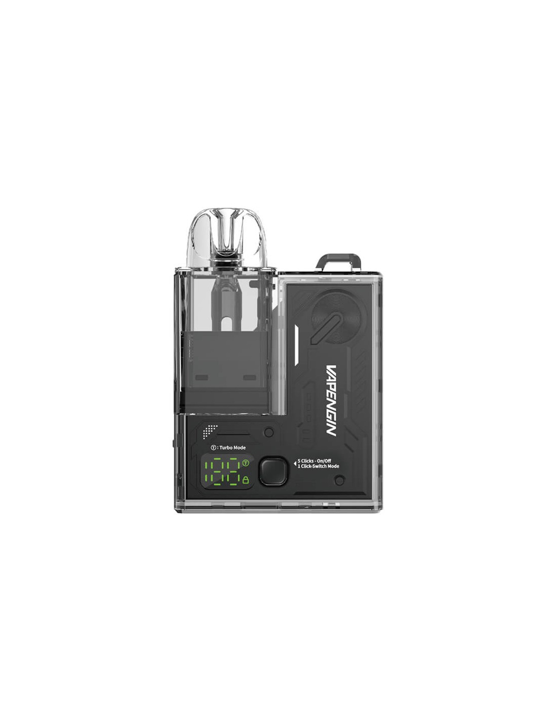 Το Vapengin Earth Pod Kit διαθέτει την επιλογή Turbo Mode, προσφέροντας μια ενισχυμένη εμπειρία ατμίσματος με αυξημένη ισχύ και ταχύτητα θέρμανσης για ακόμα πιο πλούσια γεύση και πυκνότερο ατμό.